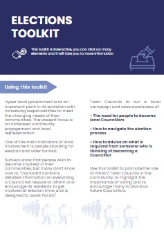 Use this toolkit to promote the role of Parish/Town Councils in the community, highlight the importance of voting, and encourage individuals to stand as future Councillors.