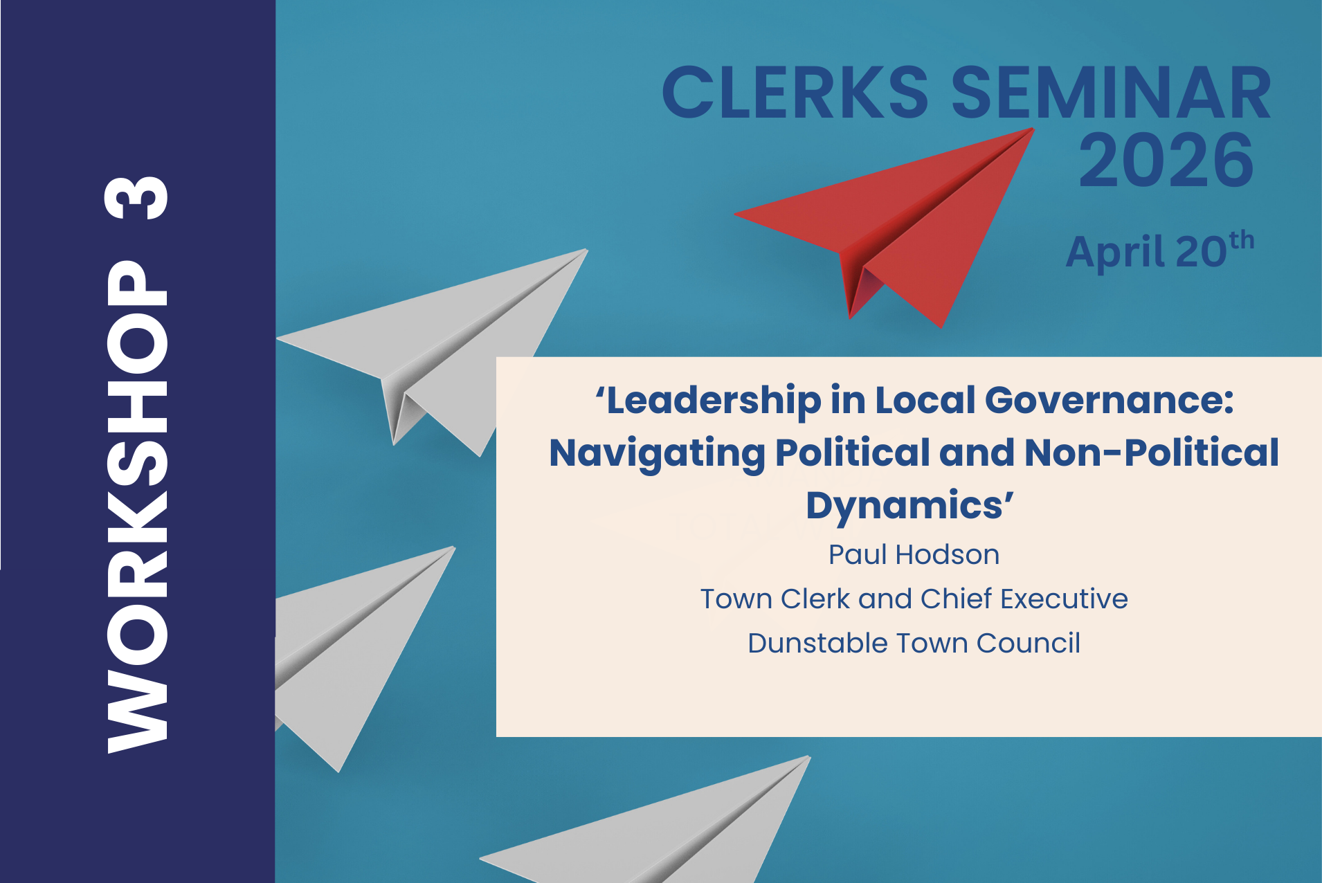 Clerks Seminar April 20th 2026 – Workshop 3 -Leadership in Local Governance: Navigating Political and Non-Political Dynamics with Paul Hodson, Town Clerk & CEO of Dunstable Town Council